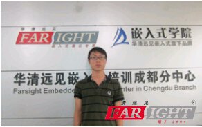 郑卫付是2015年应届毕业生就读于四川大学电子科学与技术专业,2014年暑假来到华清远见学习嵌入式,在来华清之前基础也比较扎实,在华清的时候学习也是很用功,技术能力提升很多。郑卫付是一个比较有想法的人,想法也比较成熟。
